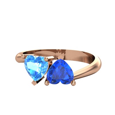 Akuamarin ve lab safir 8 ayar rose altın yüzük