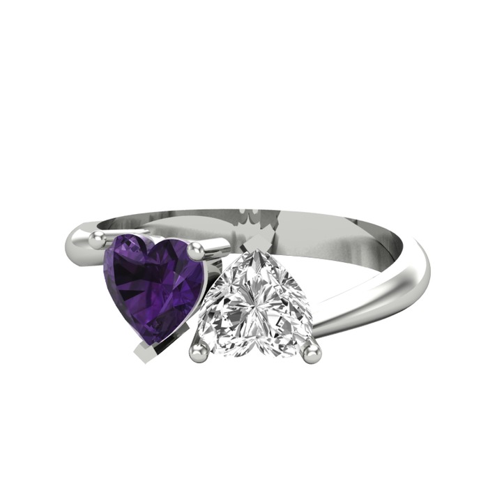 Ametist ve beyaz zirkon 18 ayar beyaz altın yüzük