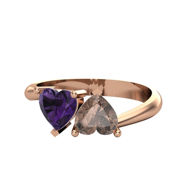 Ametist ve dumanlı kuvars 18 ayar rose altın yüzük