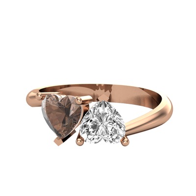 Dumanlı kuvars ve beyaz zirkon 18 ayar rose altın yüzük