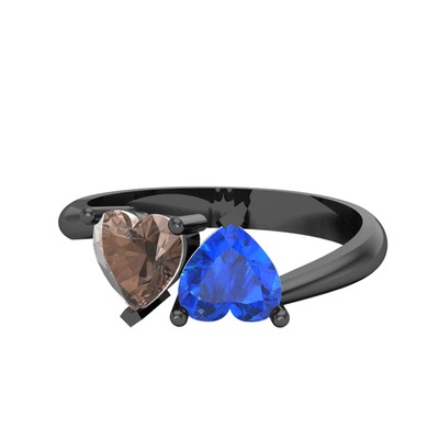 Dumanlı kuvars ve lab safir 925 ayar siyah rodyum kaplama gümüş yüzük
