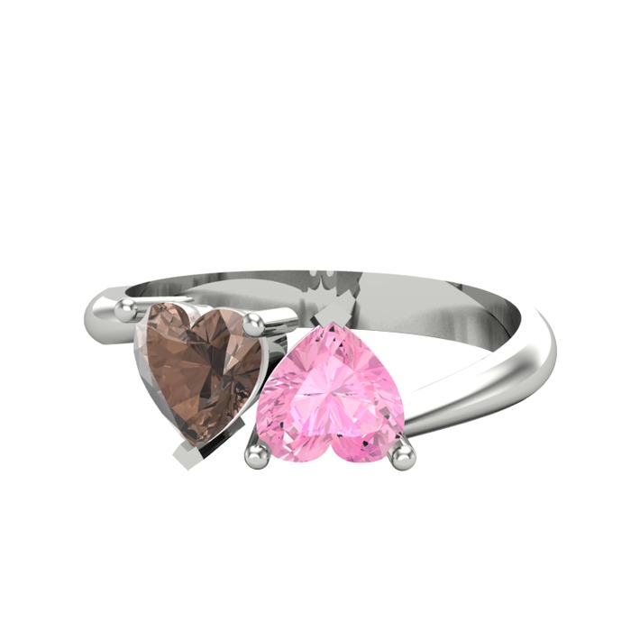 Dumanlı kuvars ve pembe kuvars 14 ayar beyaz altın yüzük