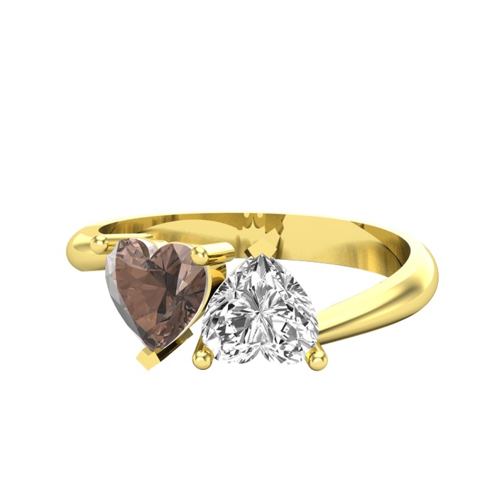 Dumanlı kuvars ve swarovski 925 ayar altın kaplama gümüş yüzük