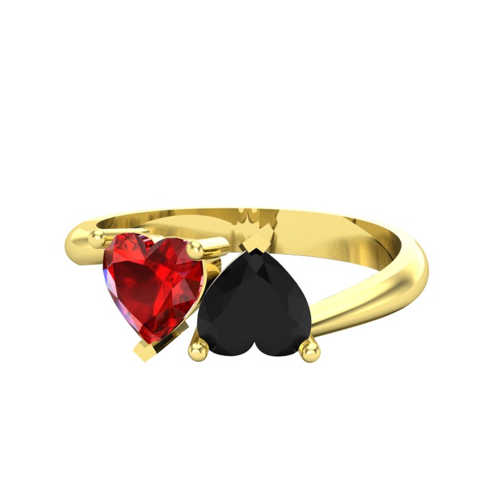 Garnet ve siyah zirkon 14 ayar altın yüzük