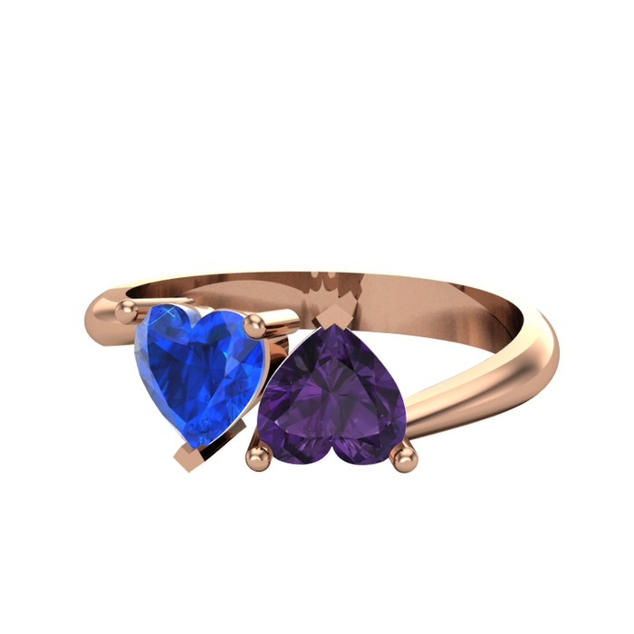 Lab safir ve ametist 14 ayar rose altın yüzük