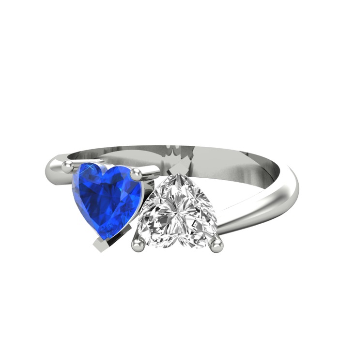 Lab safir ve beyaz zirkon 8 ayar beyaz altın yüzük