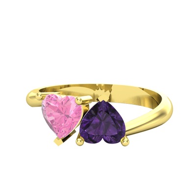 Pembe kuvars ve ametist 8 ayar altın yüzük