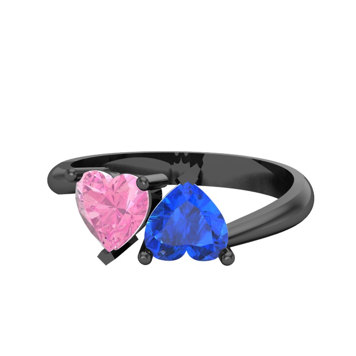Pembe kuvars ve lab safir 925 ayar siyah rodyum kaplama gümüş yüzük