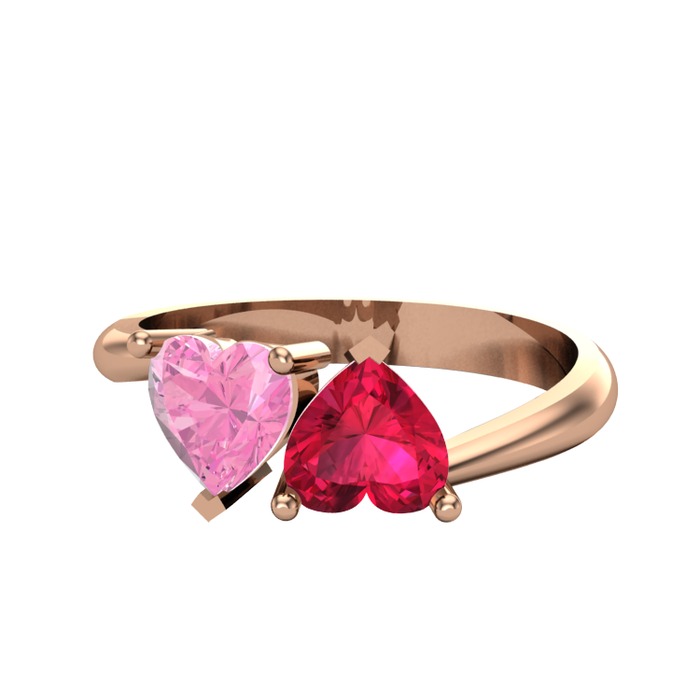 Pembe kuvars ve rodolit garnet 8 ayar rose altın yüzük