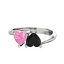 Pembe kuvars ve siyah zirkon 14 ayar beyaz altın yüzük