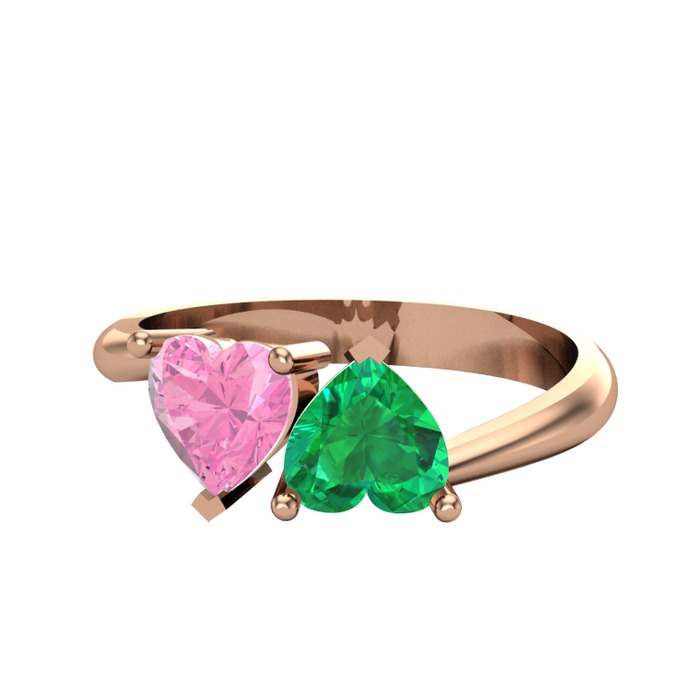 Pembe kuvars ve yeşil kuvars 18 ayar rose altın yüzük
