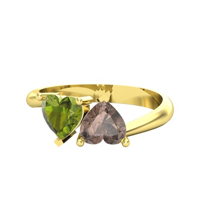 Peridot ve dumanlı kuvars 14 ayar altın yüzük