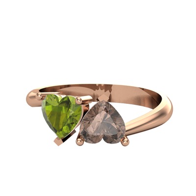 Peridot ve dumanlı kuvars 18 ayar rose altın yüzük
