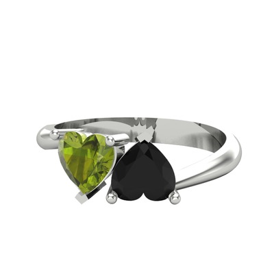 Peridot ve siyah zirkon 18 ayar beyaz altın yüzük