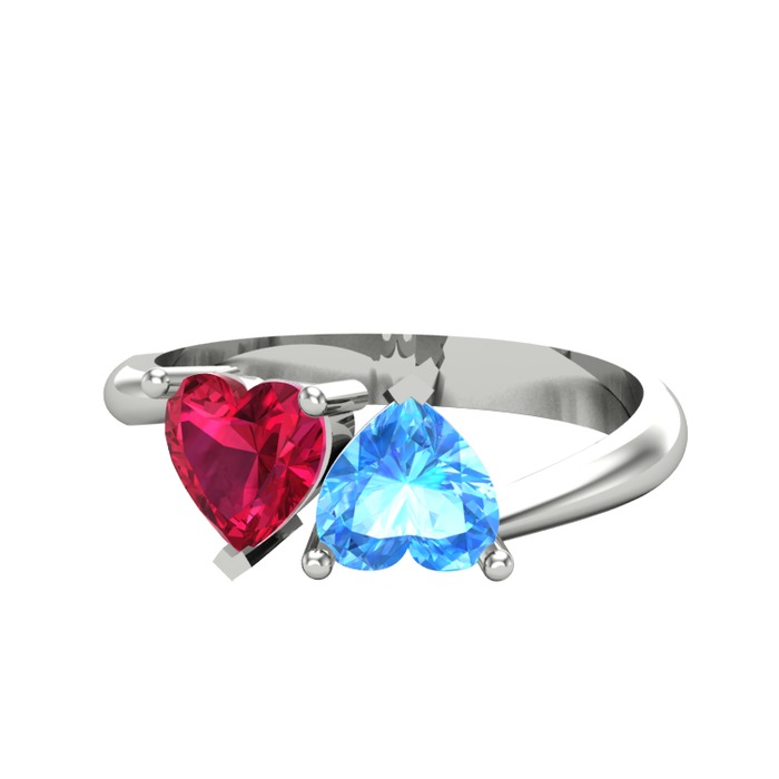 Rodolit garnet ve akuamarin 18 ayar beyaz altın yüzük