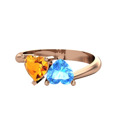 Sitrin ve akuamarin 14 ayar rose altın yüzük