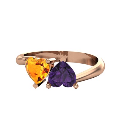 Sitrin ve ametist 18 ayar rose altın yüzük