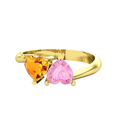 Sitrin ve pembe kuvars 18 ayar altın yüzük