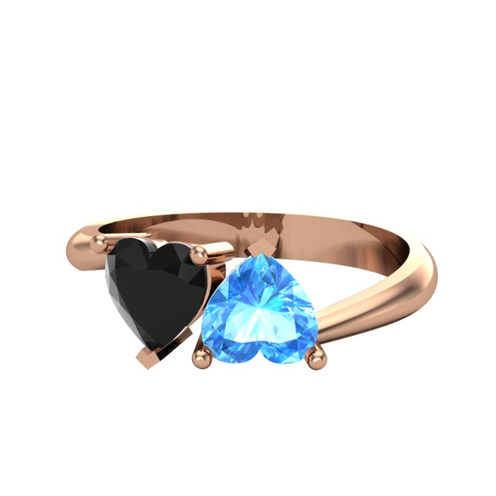 Siyah zirkon ve akuamarin 925 ayar rose altın kaplama gümüş yüzük