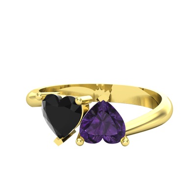 Siyah zirkon ve ametist 8 ayar altın yüzük