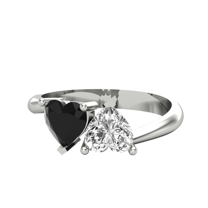 Siyah zirkon ve beyaz zirkon 14 ayar beyaz altın yüzük