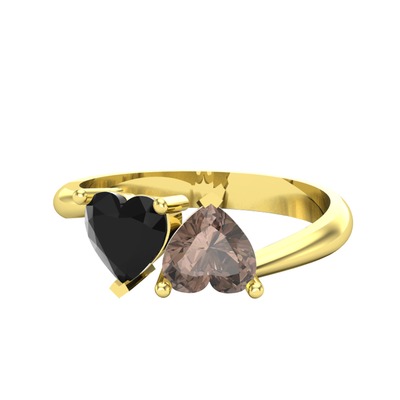 Siyah zirkon ve dumanlı kuvars 18 ayar altın yüzük
