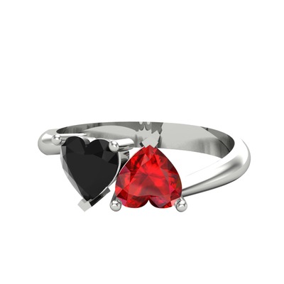 Siyah zirkon ve garnet 18 ayar beyaz altın yüzük