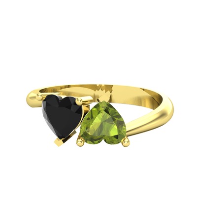 Siyah zirkon ve peridot 18 ayar altın yüzük