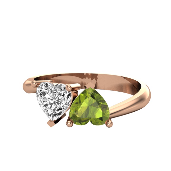 Swarovski ve peridot 14 ayar rose altın yüzük
