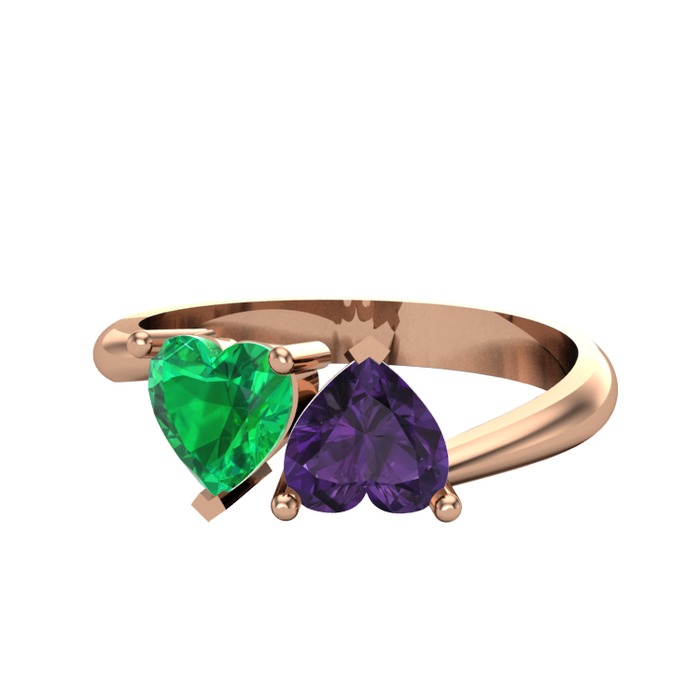 Yeşil kuvars ve ametist 14 ayar rose altın yüzük
