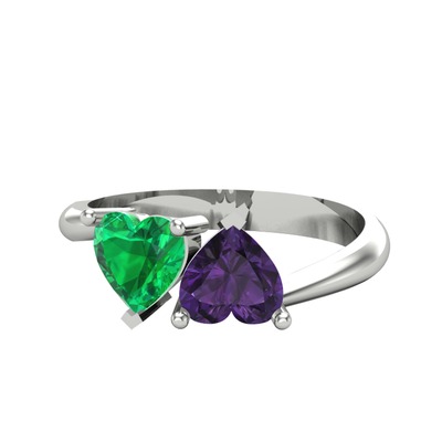 Yeşil kuvars ve ametist 18 ayar beyaz altın yüzük