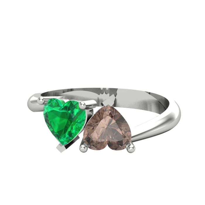 Yeşil kuvars ve dumanlı kuvars 18 ayar beyaz altın yüzük