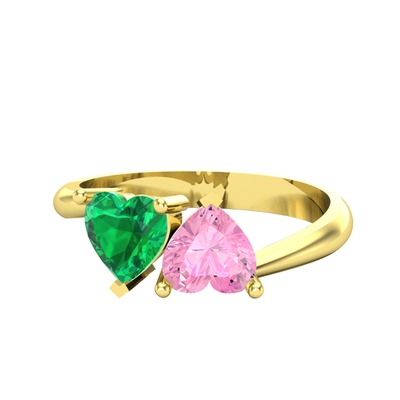 Yeşil kuvars ve pembe kuvars 18 ayar altın yüzük