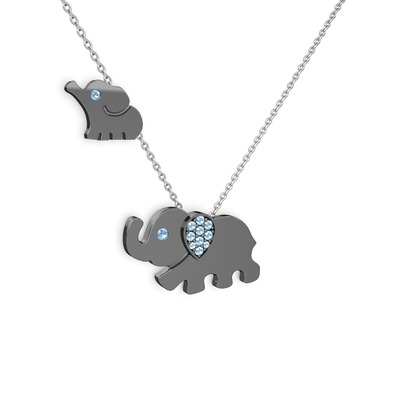 Akuamarin 925 ayar siyah rodyum kaplama gümüş kolye (40 cm beyaz altın rolo zincir)