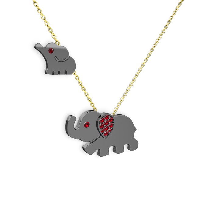 Garnet 925 ayar siyah rodyum kaplama gümüş kolye (40 cm altın rolo zincir)