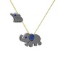 İkili Fil Kolye - Lab safir 925 ayar siyah rodyum kaplama gümüş kolye (40 cm altın rolo zincir)