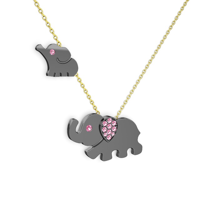 Pembe kuvars 925 ayar siyah rodyum kaplama gümüş kolye (40 cm gümüş rolo zincir)