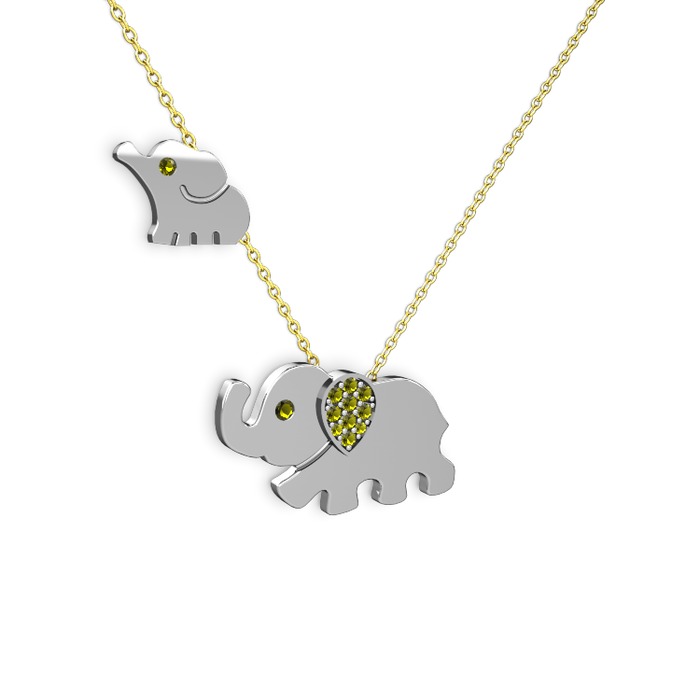 Peridot 18 ayar beyaz altın kolye (40 cm altın rolo zincir)