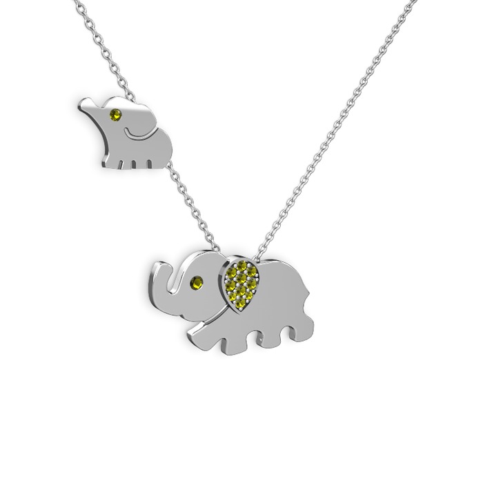 Peridot 8 ayar beyaz altın kolye (40 cm beyaz altın rolo zincir)