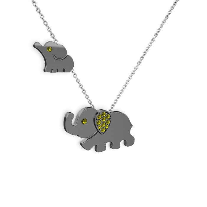 Peridot 925 ayar siyah rodyum kaplama gümüş kolye (40 cm beyaz altın rolo zincir)