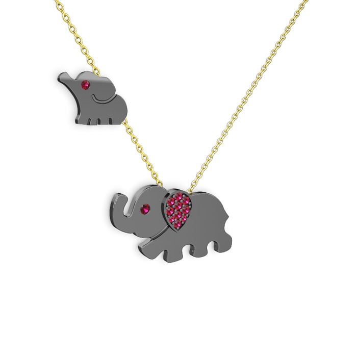 Rodolit garnet 925 ayar siyah rodyum kaplama gümüş kolye (40 cm altın rolo zincir)