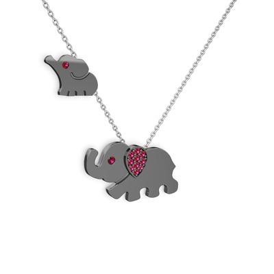 Rodolit garnet 925 ayar siyah rodyum kaplama gümüş kolye (40 cm beyaz altın rolo zincir)