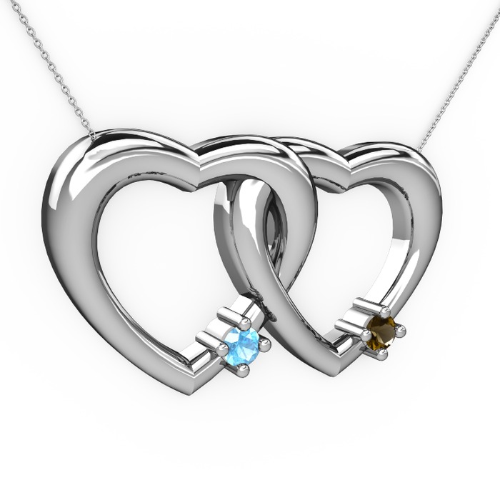 Akuamarin ve dumanlı kuvars 925 ayar gümüş kolye (40 cm beyaz altın rolo zincir)