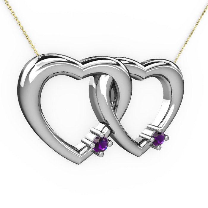 Ametist 14 ayar beyaz altın kolye (40 cm altın rolo zincir)