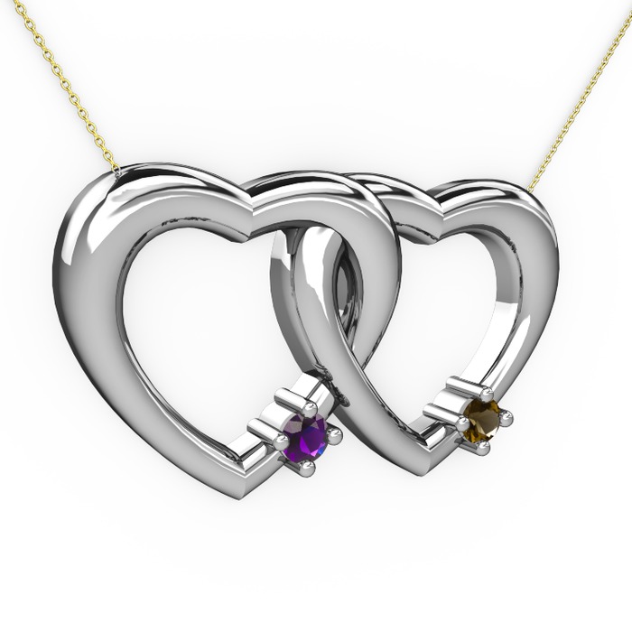 Ametist ve dumanlı kuvars 8 ayar beyaz altın kolye (40 cm altın rolo zincir)