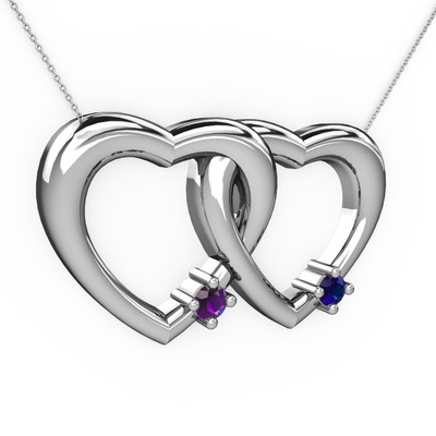 Ametist ve lab safir 14 ayar beyaz altın kolye (40 cm gümüş rolo zincir)