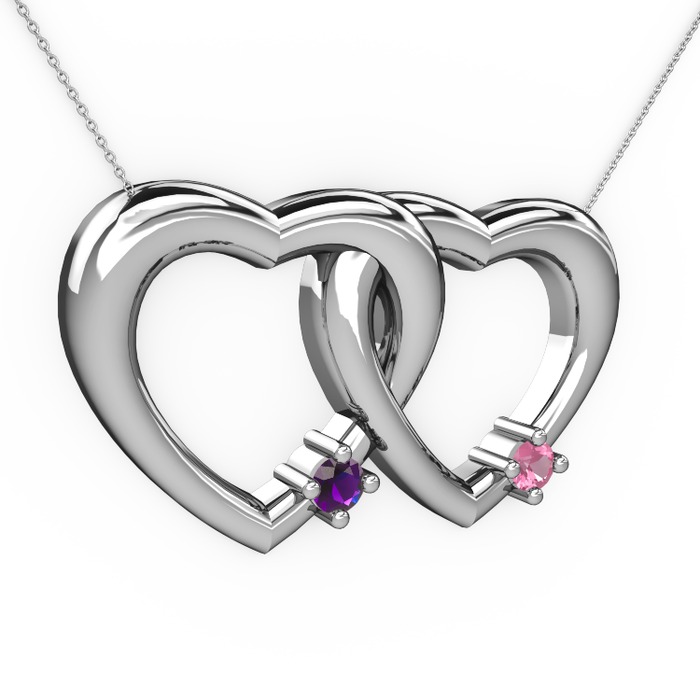 Ametist ve pembe kuvars 18 ayar beyaz altın kolye (40 cm beyaz altın rolo zincir)
