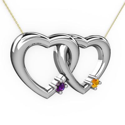 Ametist ve sitrin 14 ayar beyaz altın kolye (40 cm gümüş rolo zincir)