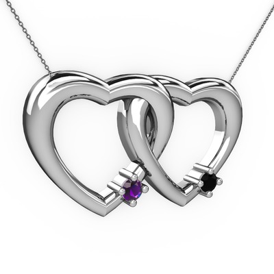 Ametist ve siyah zirkon 8 ayar beyaz altın kolye (40 cm gümüş rolo zincir)