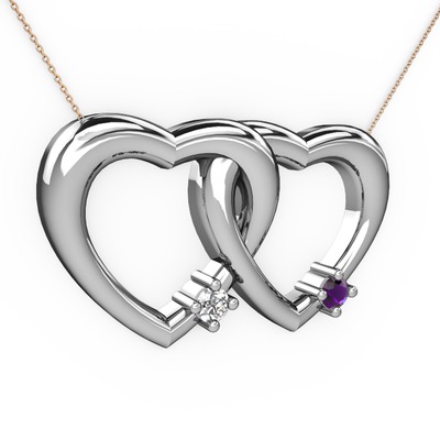 Beyaz zirkon ve ametist 18 ayar beyaz altın kolye (40 cm gümüş rolo zincir)
